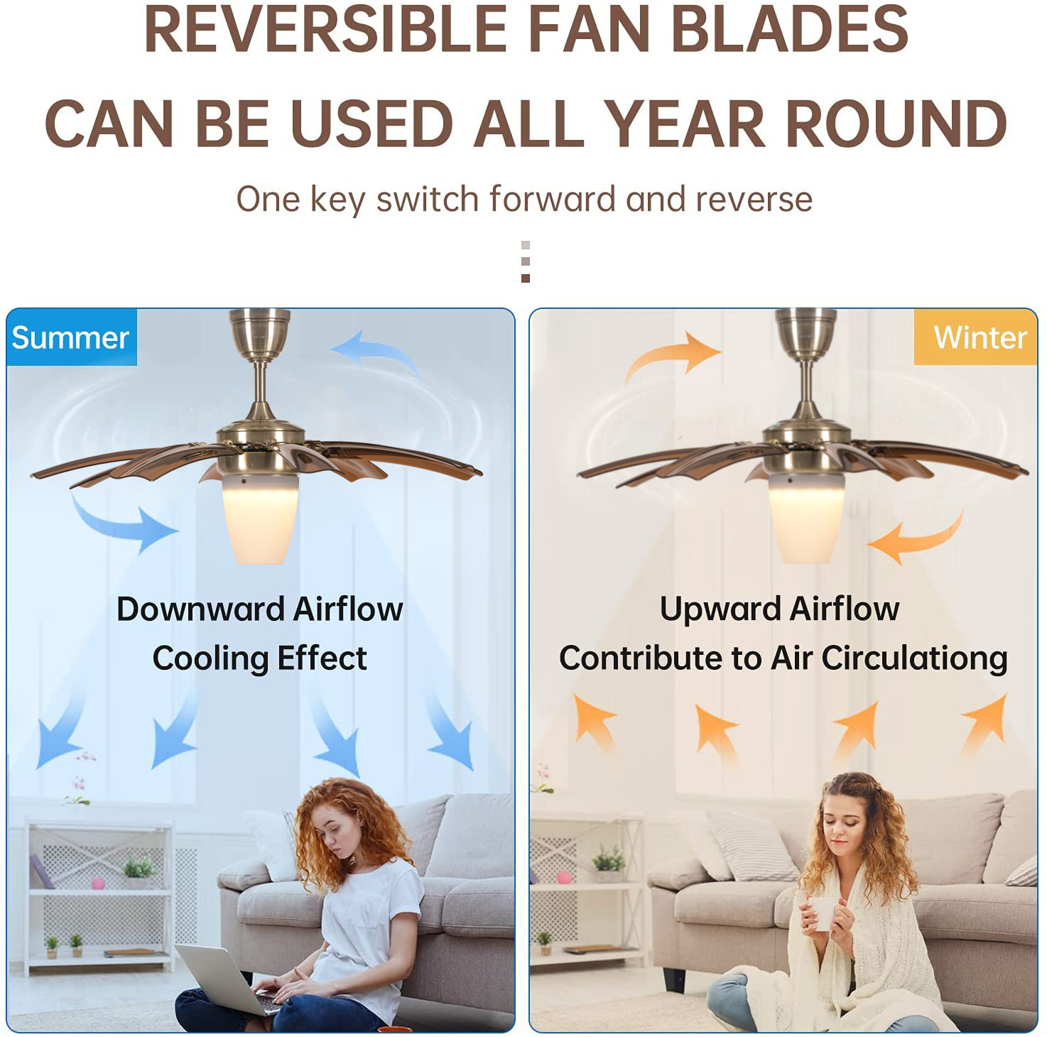 Luxury Ceiling fan with BLDC Motor, Reverse Air Flow For Summer winter mode, 8 Retractable Blades, 3 colour Dimmable LED Light, Remote/App/Voice Control